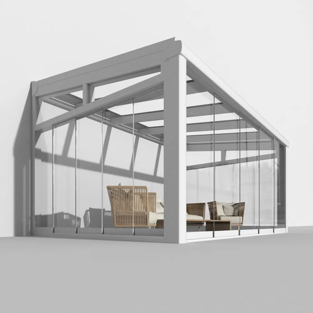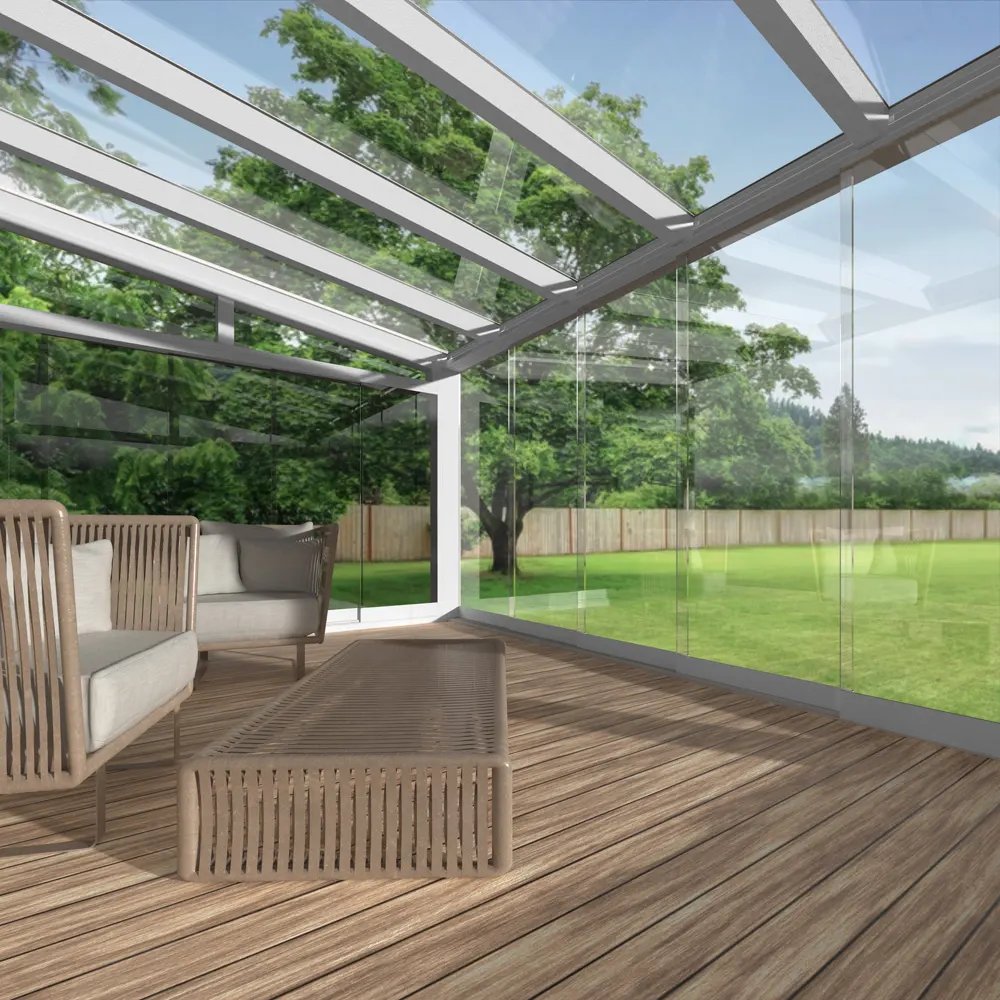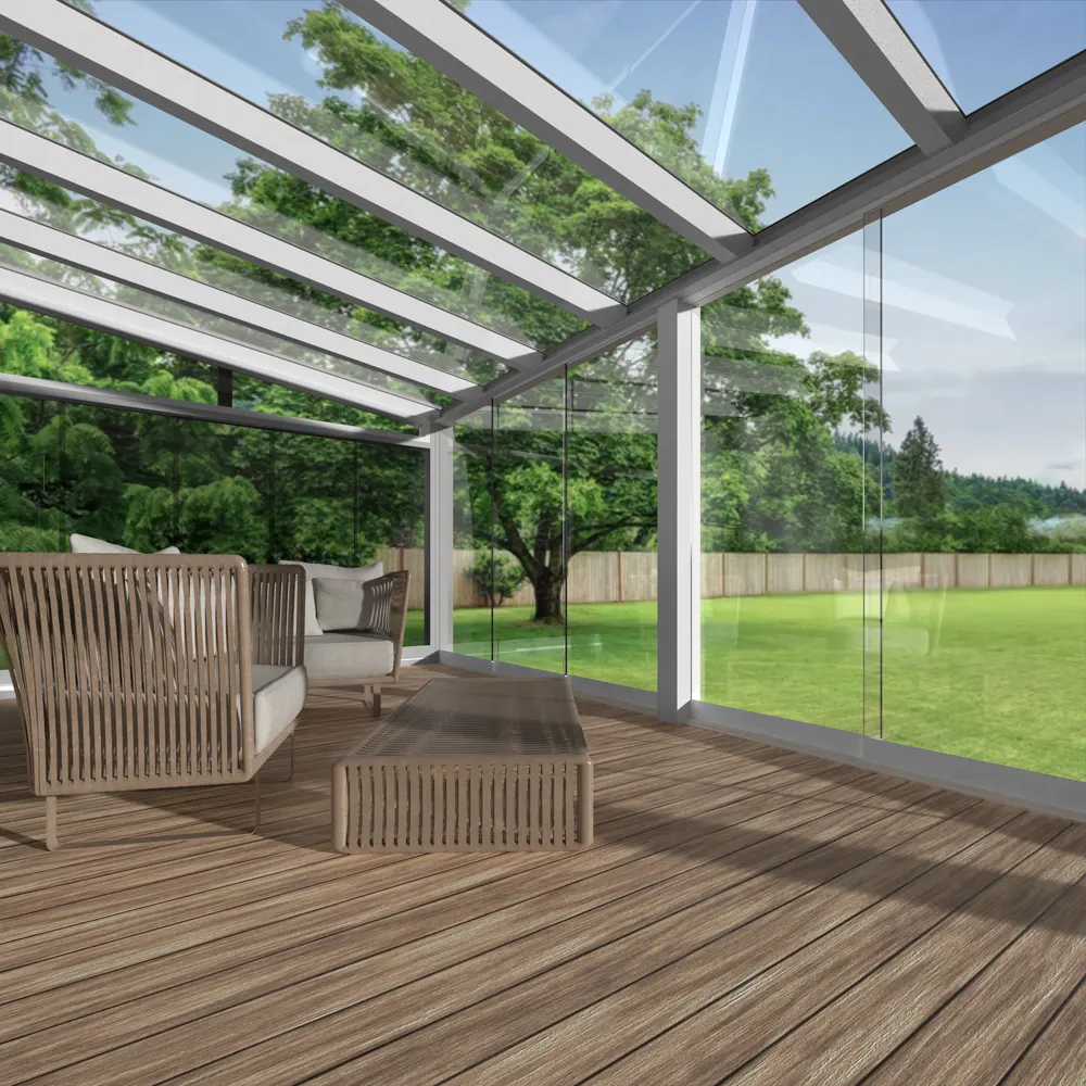 - Dach- und Seitenverglasung mit VSG Glas: klar, getönt oder opal – wählbar nach Wunsch